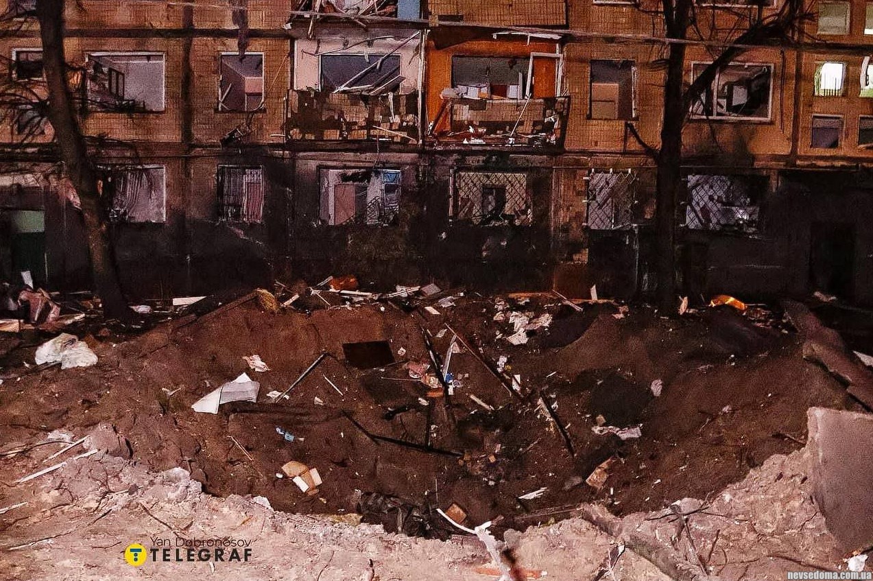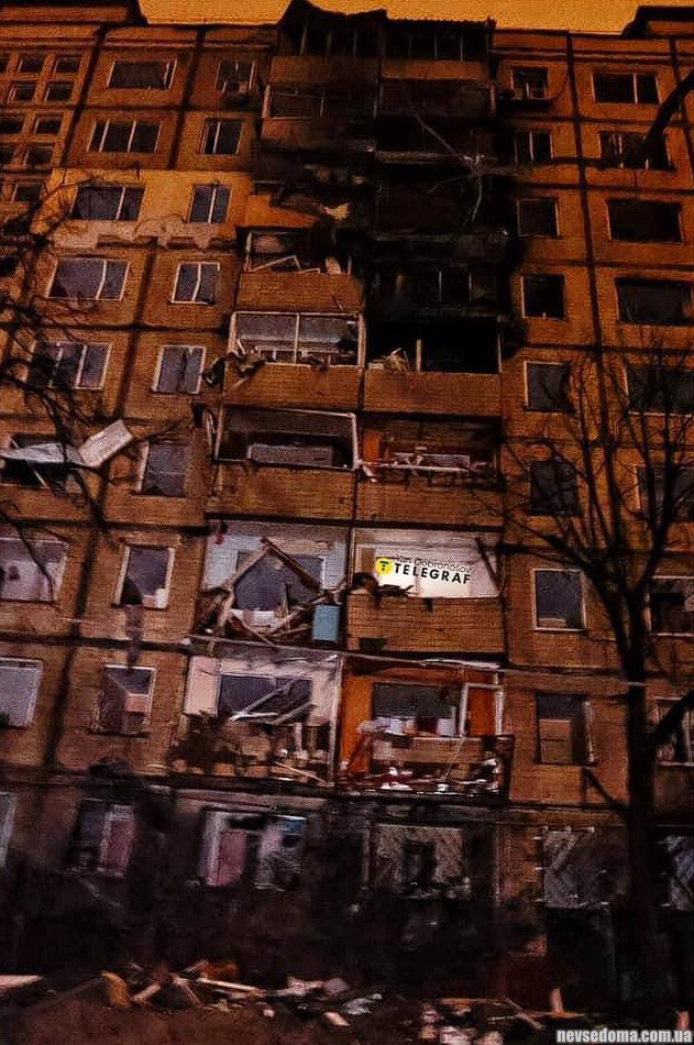 - Desnyansky district: a 9-story building and 8 cars in the yard were damaged. Goloseevsky district: falling debris onto the roadway.
