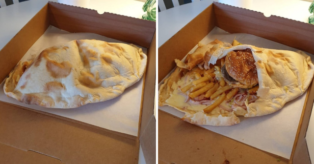 The name of this strange dish translates to “big food.” Consists of a hamburger bun, various pizza toppings, chips or fries. Often baked with ham.