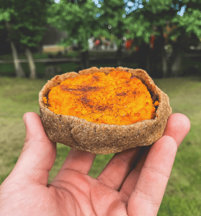 These are rather strange-looking pies with potatoes and carrots, which are served chilled. Aromatic spices or sugar are sprinkled on top.