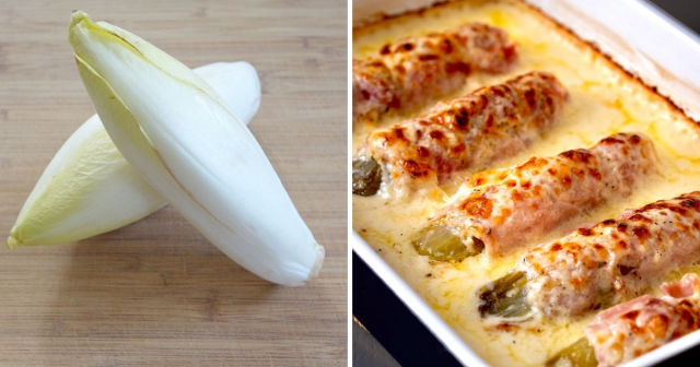 The dish is usually made with a combination of endive (a cabbage-like plant), lemon juice, milk, flour, butter, slices of ham, nutmeg, Neufchatel cheese, salt and black pepper.