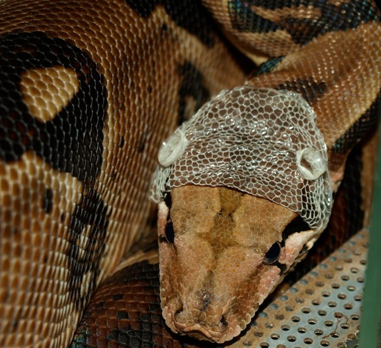 Pay attention to the snake's skin. Her old scales come off along with her eye glasses.