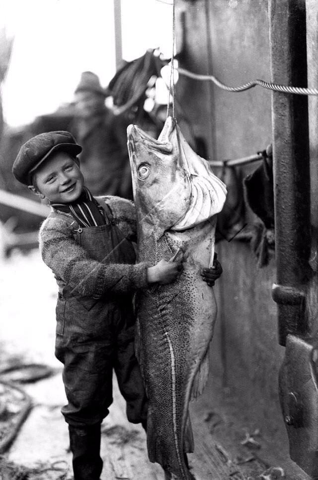 Fishing is an ancient practice. Once an essential part of human survival and culture, it has evolved into one of the most popular hobbies in the world many years ago. It involves skill, patience, and sometimes just luck. Let's take a look at a small collection of retro photographs of fishermen's catches from different eras!