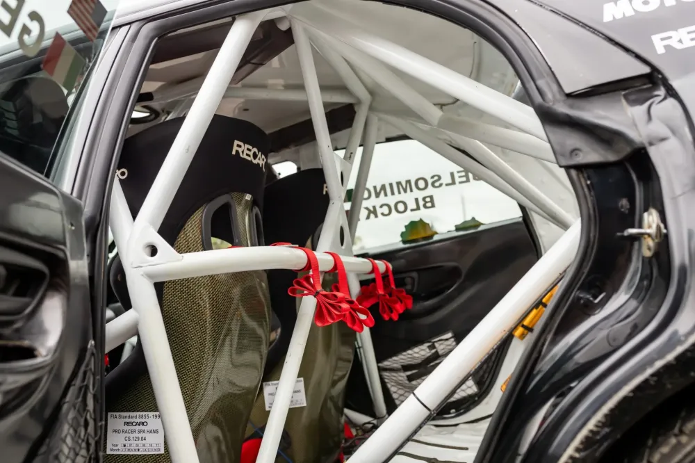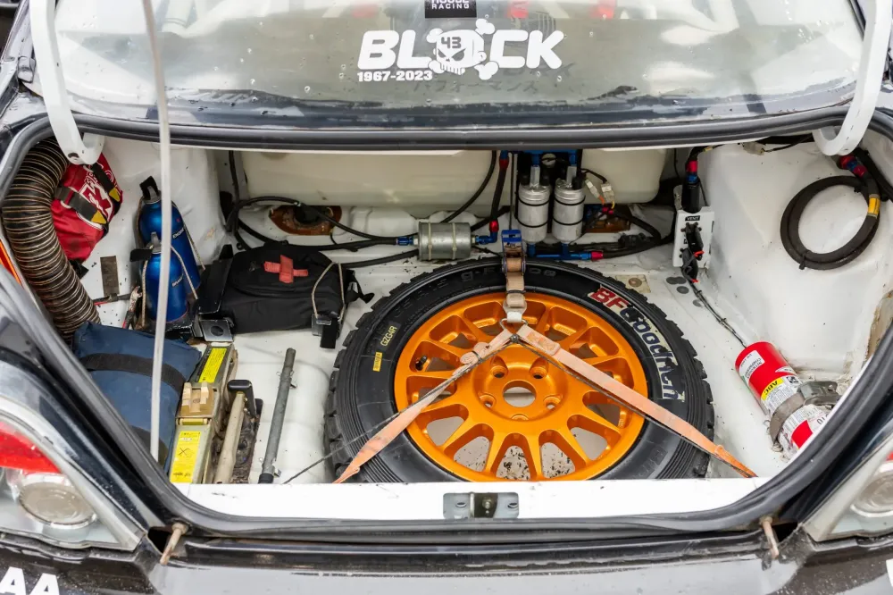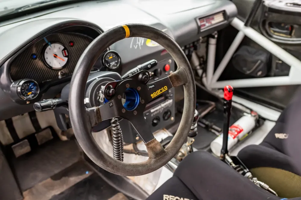 The suspension was rebuilt using new arms and Ohlins shock absorbers, reinforced stabilizers, AP brakes and 15-inch Speedline wheels were installed. The interior features a roll cage, Recaro Pro Racer buckets, carbon fiber panels and new pedals. In addition, a rally computer was installed for the co-driver, and new instruments were installed for the driver.
