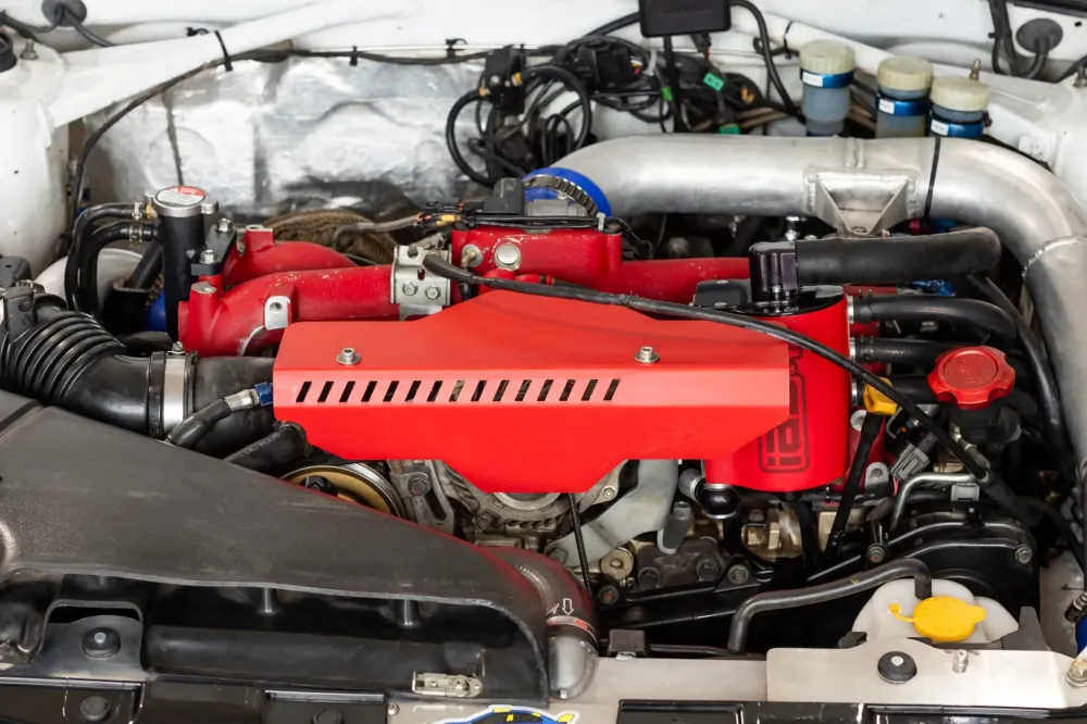 The rally car was built in 2006 on the basis of a two-year-old civilian Impreza, which was written off after being sunk. The two-liter flat four received, for example, improved supercharging and a MoTeC control unit, a different cooling system, a more efficient fuel pump and a number of other improvements. The transmission uses a 5-speed Kaps manual with three differentials (front and rear from Cusco).