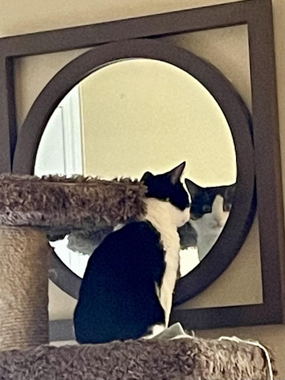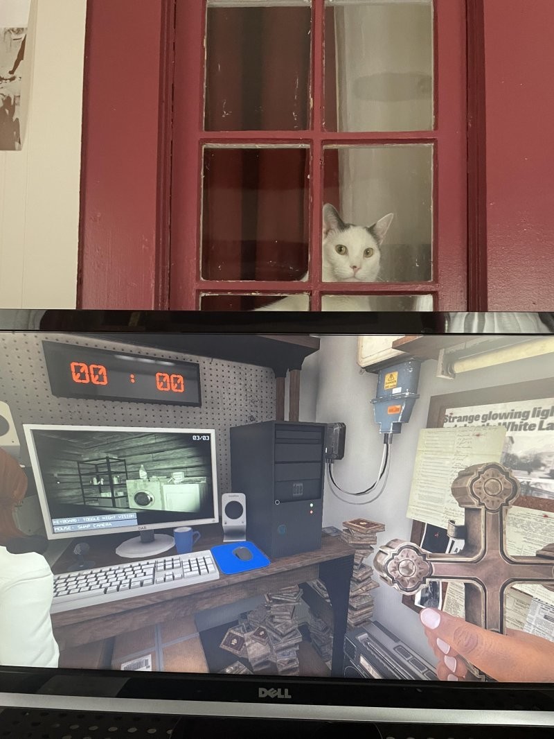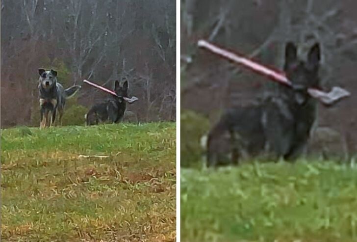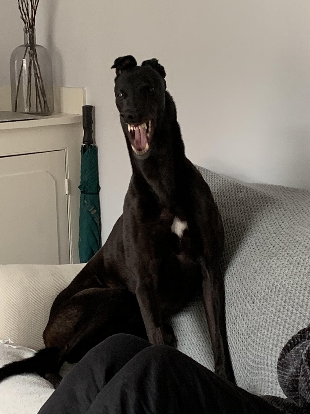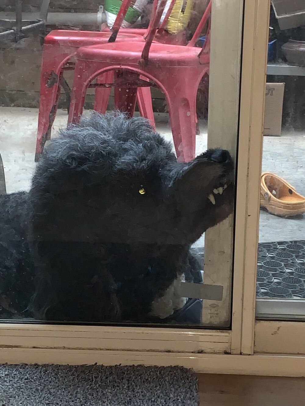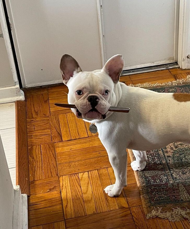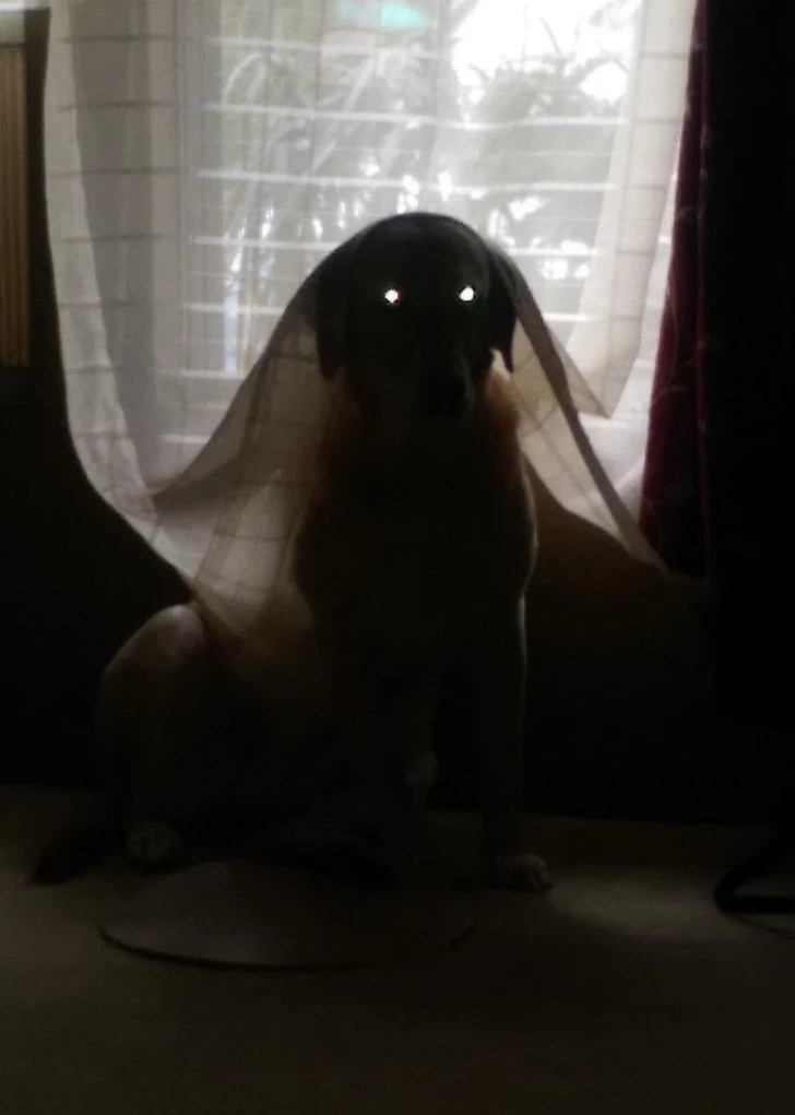 9. This dog loves to peek into my basement office and scare me when I look up.
