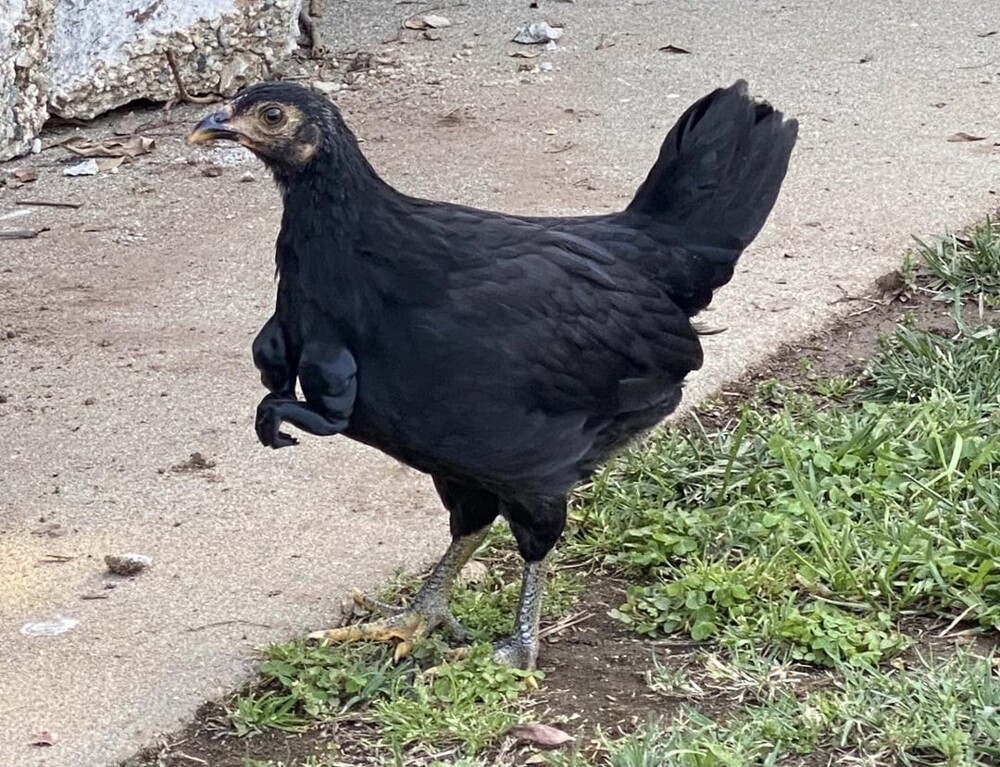 3. My brother bought dinosaur legs for our black chicken.