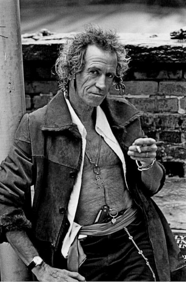 When playing the role of Captain Jack Sparrow in the films of the Pirates of the Caribbean series (dir.: Gore Verbinski, Rob Marshall, Espen Sandberg, Joakim Rönning, 2003-17), Johnny Depp tried to imitate the gait and manner of speaking of Richards, who is one of his favorite performers. And in the film Pirates of the Caribbean: At World's End (dir. G. Verbinski, 2007), at Depp's request, the musician played Jack Sparrow's father, Captain Teague. He also played Jack Richards' father in the 4th part of the franchise - Pirates of the Caribbean: On Stranger Tides (2011).