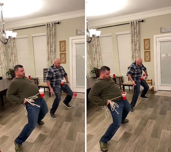 For this drinking game you will need toilet paper rolls and shot glasses. A glass is placed at the end of the roll. Participants must roll it back up without spilling the liquid.