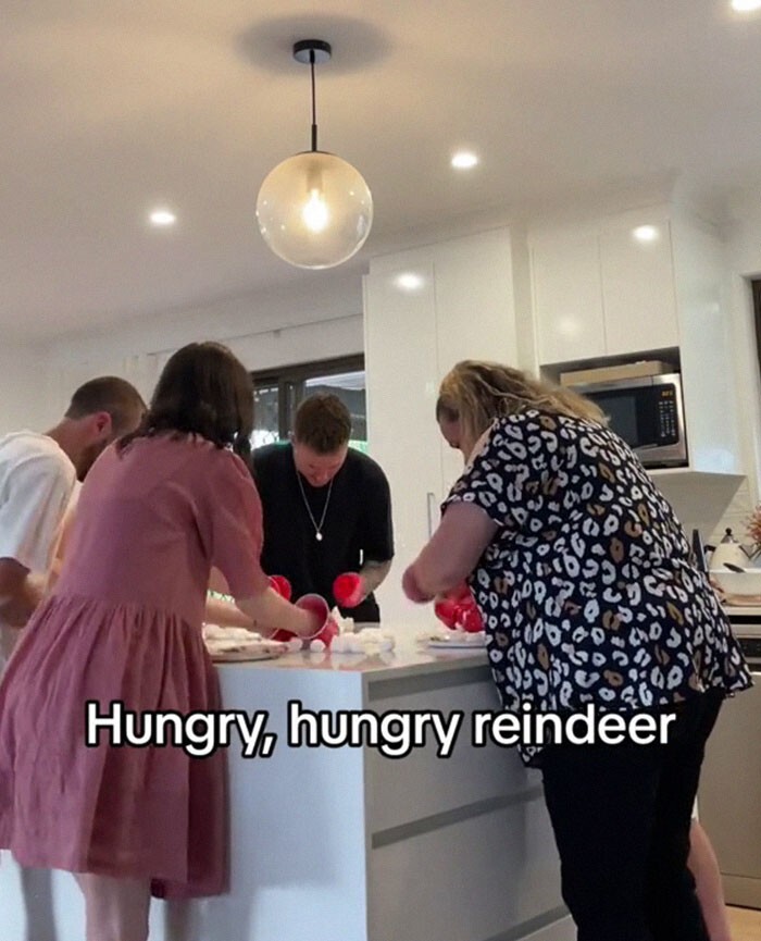 Each participant puts plastic glasses on their hands, simulating hooves, and tries to put as many marshmallows on their plate. The game lasts only a minute; whoever collects the most sweets wins.