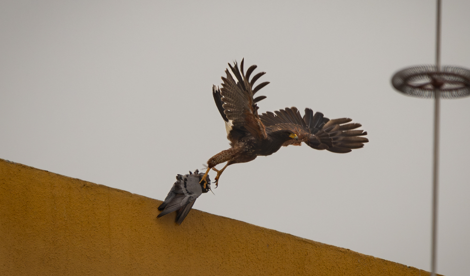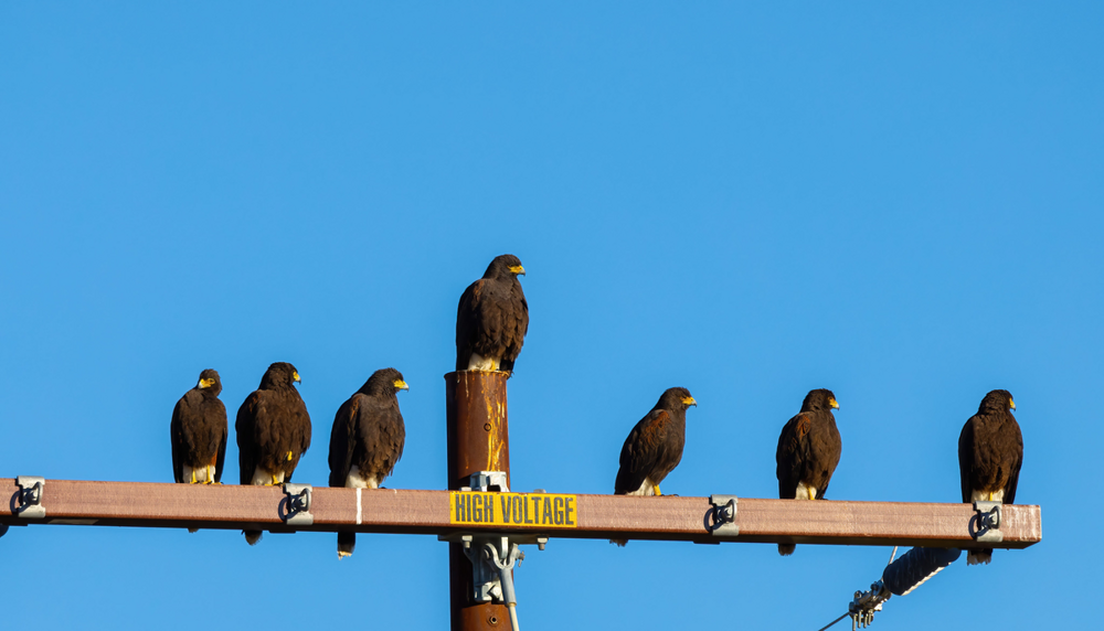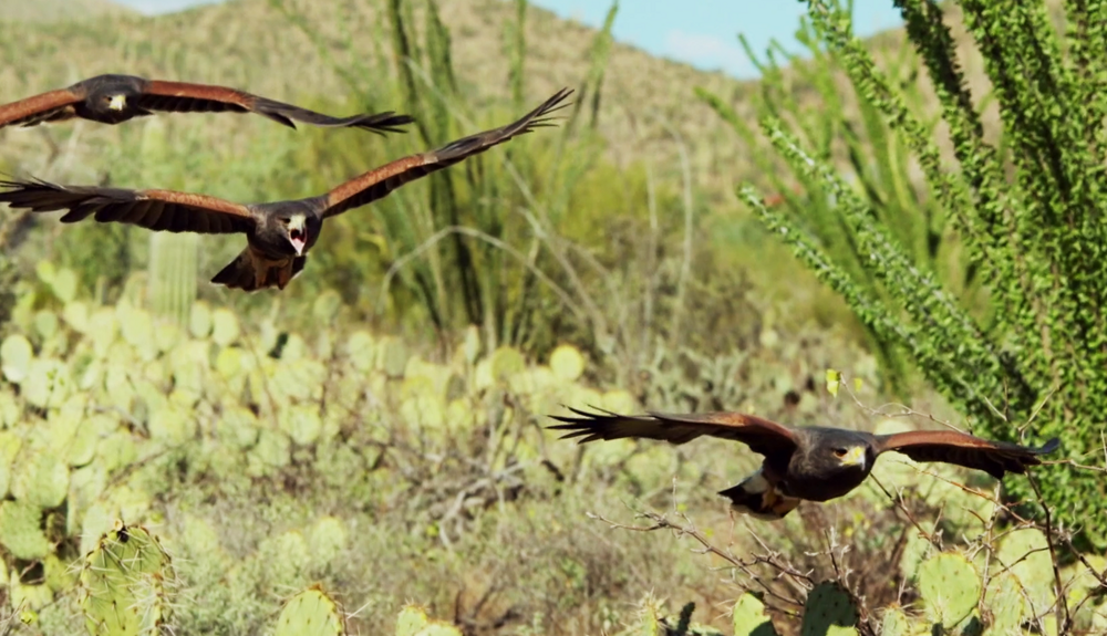 Typically, birds of prey are staunch loners. Desert buzzards are used to doing everything together. And hunt and build nests.