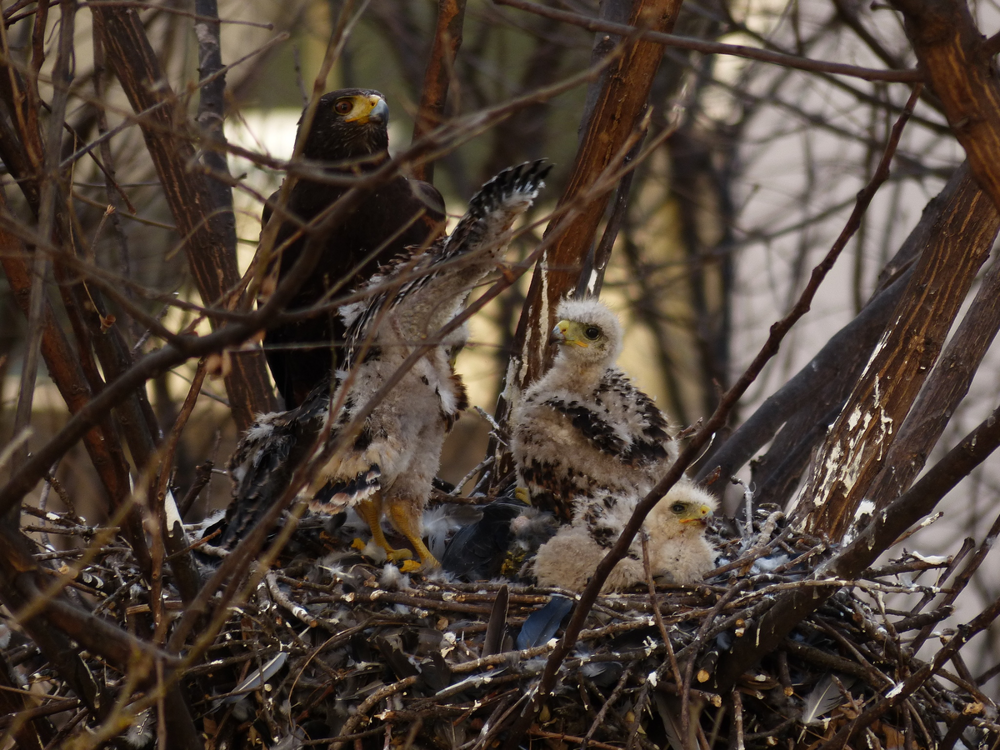 The desert buzzard, also known as Harris's hawk, is far from the largest bird of the New World. Even within their range, Mexico and central South America, there are plenty of birds larger than them. Some female desert buzzards weigh 1.6 kilograms, but most do not reach even a kilogram. And males are as much as 30% lighter than them. Of course, small birds are physically weaker than larger predators, so their nests are regularly raided by eagle owls, ravens, golden eagles and buzzards.