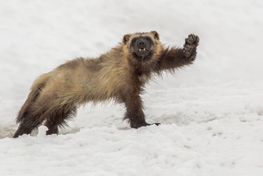 But if the animal finds stale prey, it’s also not a problem. An elk or seal carcass went underground. Or a cougar stash has been found. What, is this good thing going to waste now? No! With its powerful paws, the wolverine will dig up the remains. Hard bones are also not a problem. The upper molars at the back of the mouth are turned 90 degrees inward, which helps bite through even the most armor-piercing parts of the body!