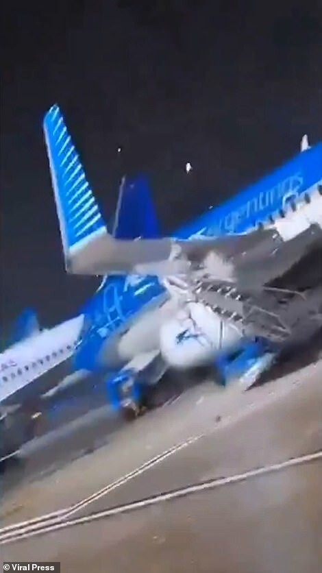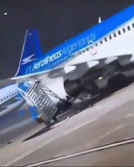 At Jorge Newbery Airport in Buenos Aires, hurricane-force wind gusts moved the plane several meters. A Boeing 737-700 of Aerolíneas Argentinas airlines hit the passenger ramp with its wing and brought it down.