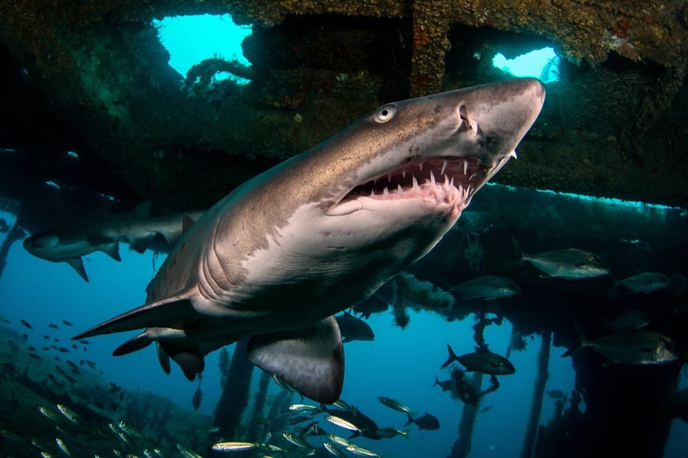 Sand sharks (Carcharias taurus) eat each other before they even leave the womb. This means that only the largest and strongest offspring survive. Adult females can mate with multiple males, and cannibalism can occur between embryos from different fathers. The researchers found five to seven embryos from multiple partners in the wombs of females early in pregnancy, and two embryos from the same father later in pregnancy.
