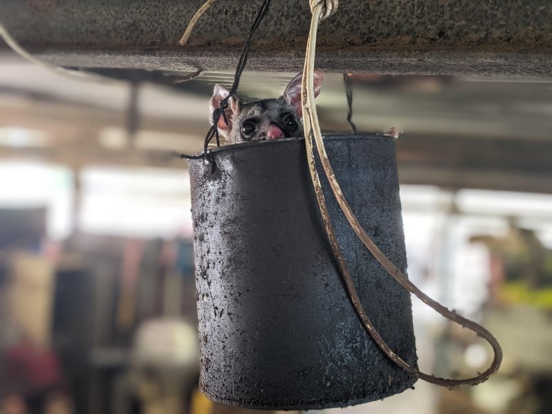 17. Opossums can be found anywhere, even chilling in a car repair shop.