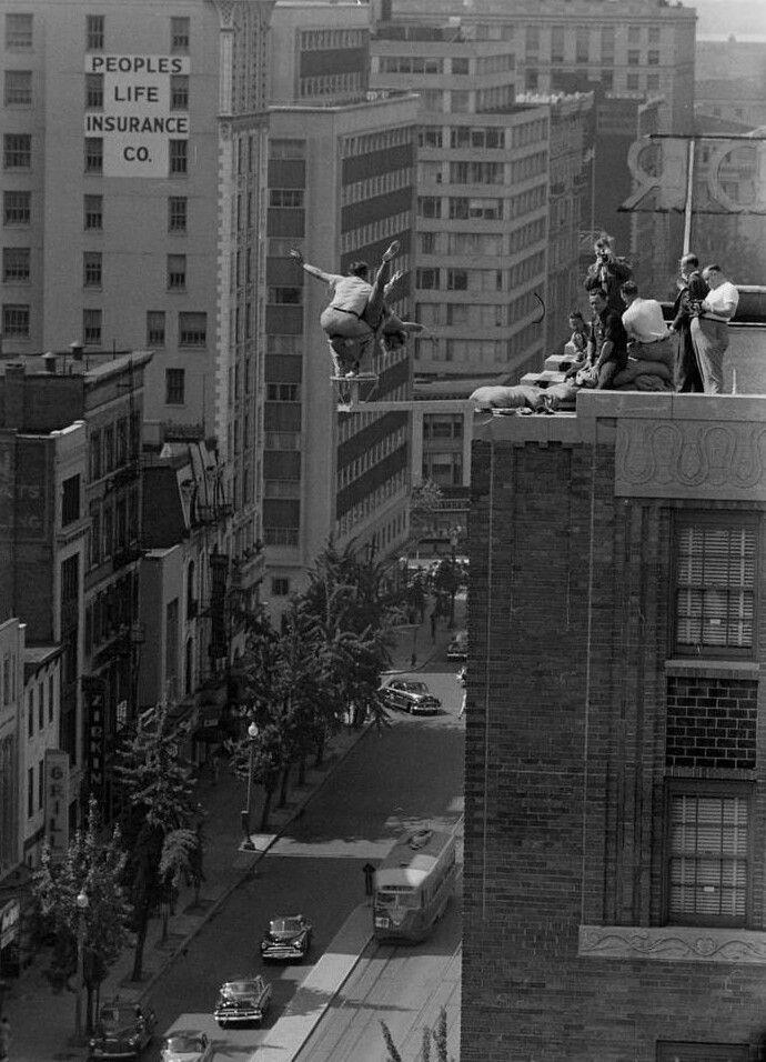 The Illinois State Journal, in an effort to attract subscribers, sponsored acrobats to come to town at least twice, in 1937 and 1946. On their first visit, they held six performances in one day - October 6th. The last evening's performance was illuminated by four powerful spotlights.