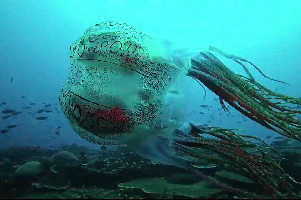 These jellyfish see the diver and realize the potential danger, immediately swimming away from him. Box jellyfish also have the rudiments of sexual behavior and a semblance of mating games.