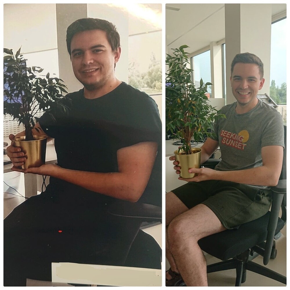 12. My achievements for 9 months - minus twenty kilograms and a grown office plant