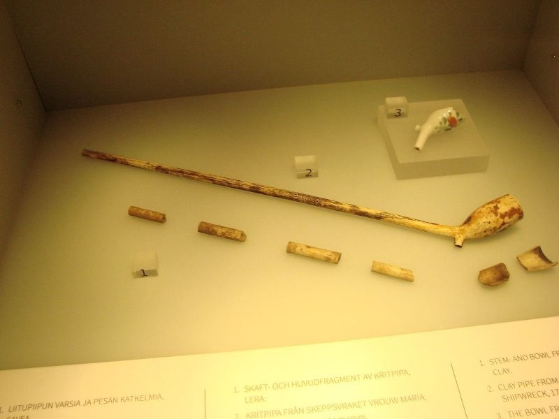 Clay pipe and smoking accessories recovered by divers from the Frau Maria