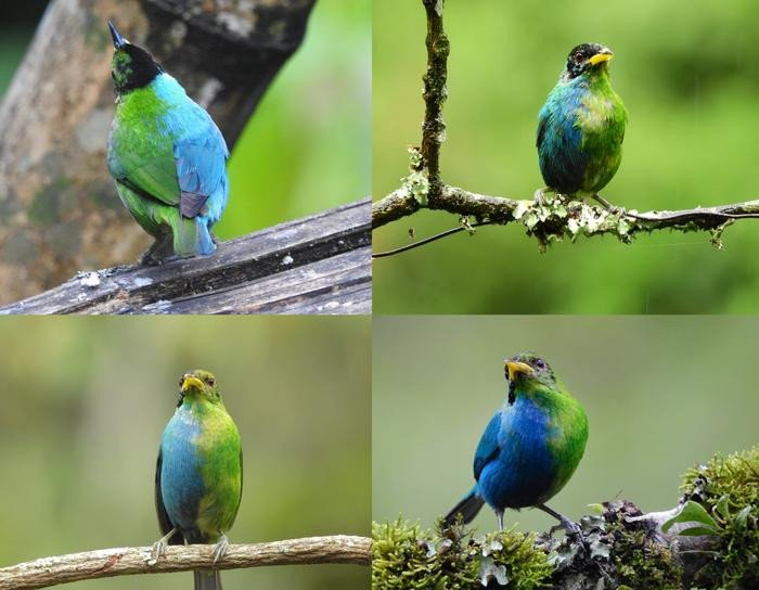 Blue plumage is the male's plumage. And the honey guide girls wear green.