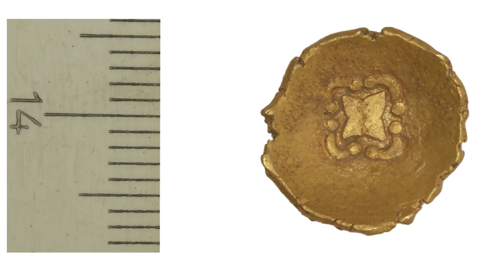 A rare Celtic Rainbow Cup coin, minted by the Celts 2,000 years ago, has been found near the Lech River in south-eastern Germany. The gold coin contains a rare design element: a four-pointed star surrounded by arches. The find is one of only three known coins containing this motif. According to legend, "rainbow goblets/bowls" are drops of gold falling to Earth from the end of the rainbow.