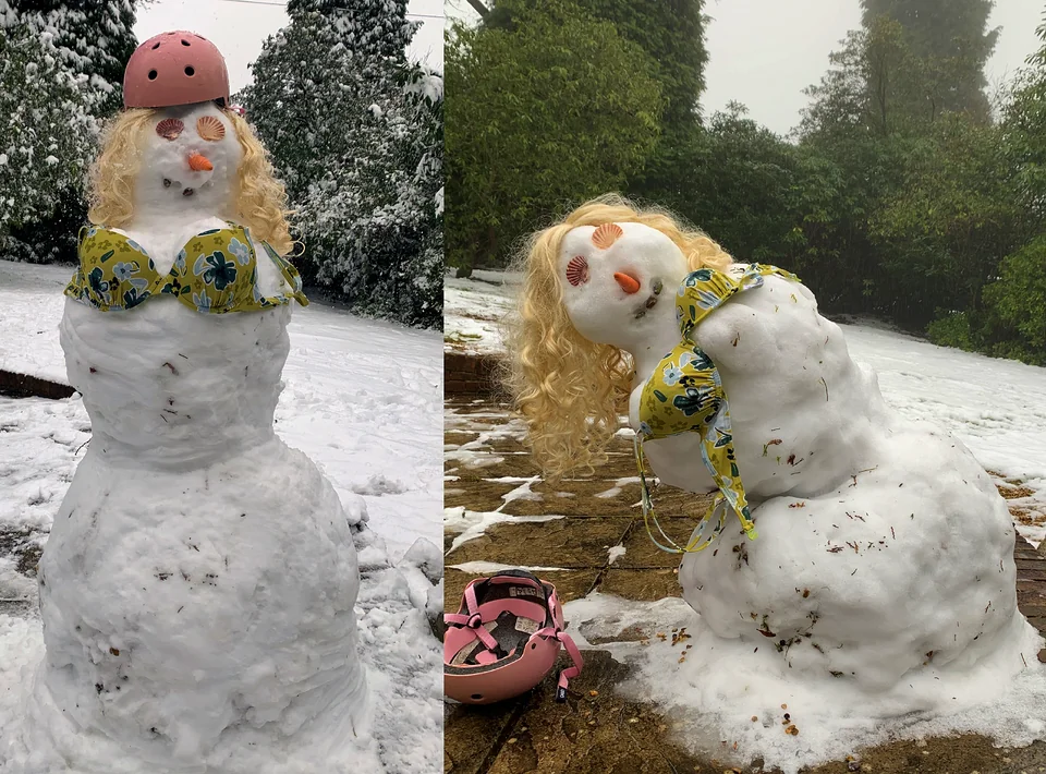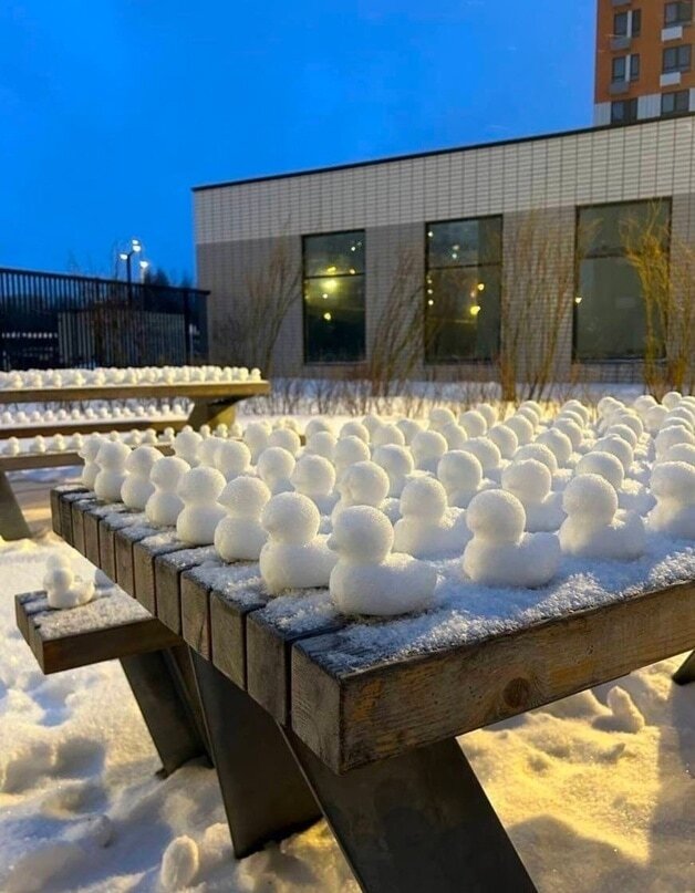 Winter is a time not only for tea under a blanket on a quiet evening, but also for fun walks that leave your cheeks red. Both children and adults spend hours outside making snow sculptures. Some of them are not satisfied with the banal rolling of balls and carrot noses, so they use their imagination and create snowmen to their taste, surprising passers-by and people on the Internet.