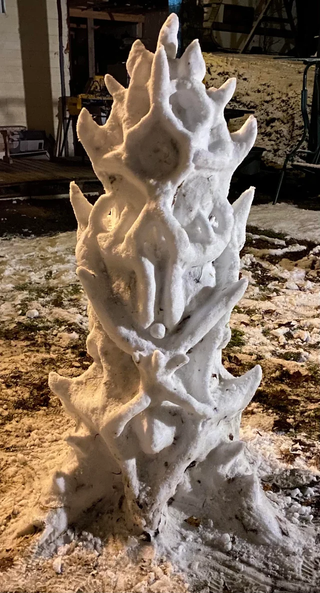 This snow lady had a busy night