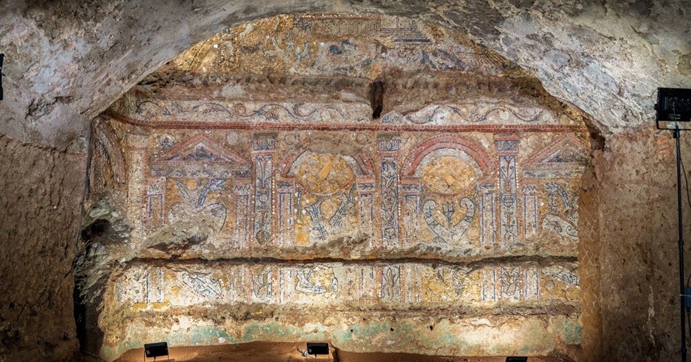 Archaeologists excavated a banquet hall decorated with bright wall mosaics. The richly decorated room was part of an aristocratic house built about 2,300 years ago on the slope of the Palatine Hill in Rome.