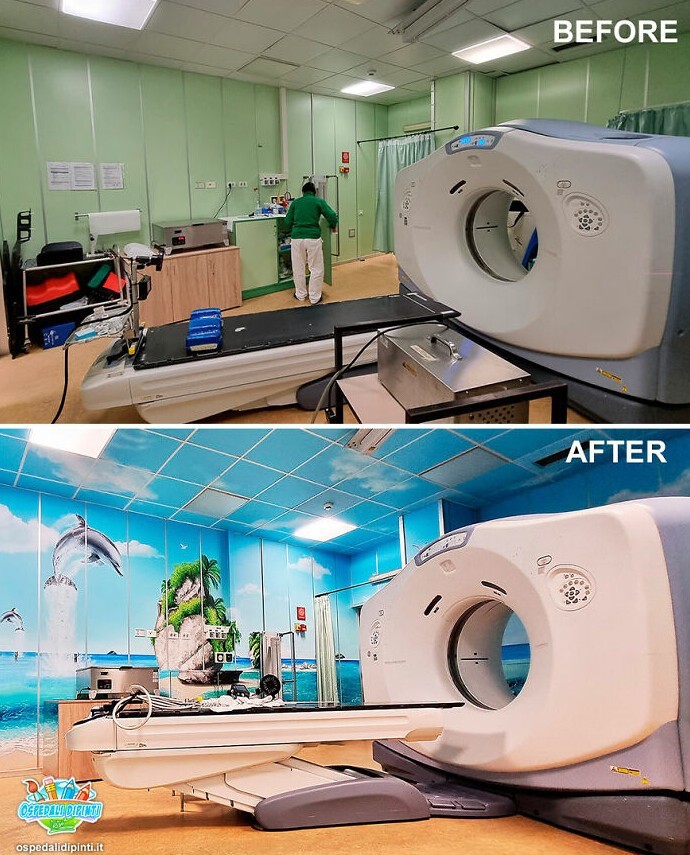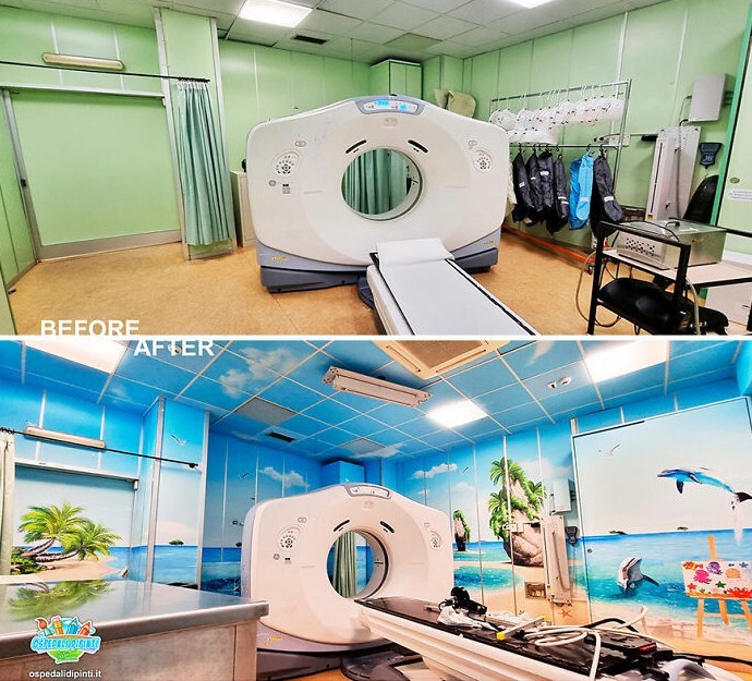 "The project was born in 2012, and during this time I painted walls in 25 hospitals, covering more than 7,300 square meters. The idea to create the project came after I first painted a wall in a radiotherapy room at the Agostino Gemelli Foundation polyclinic in Rome. I did a complete job : I painted the walls and ceiling, and to the great surprise of the doctors, positive feedback from the patients was not long in coming,” says Silvio.