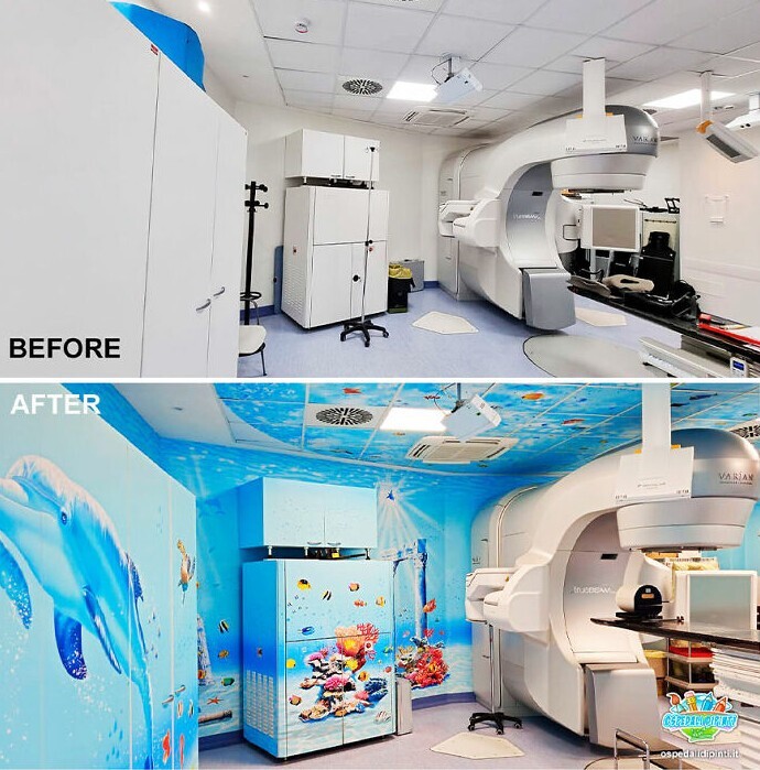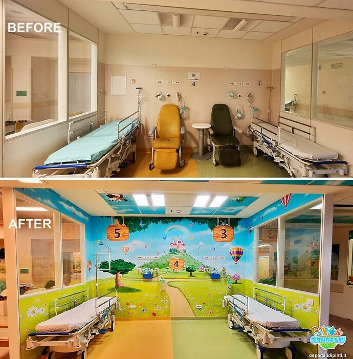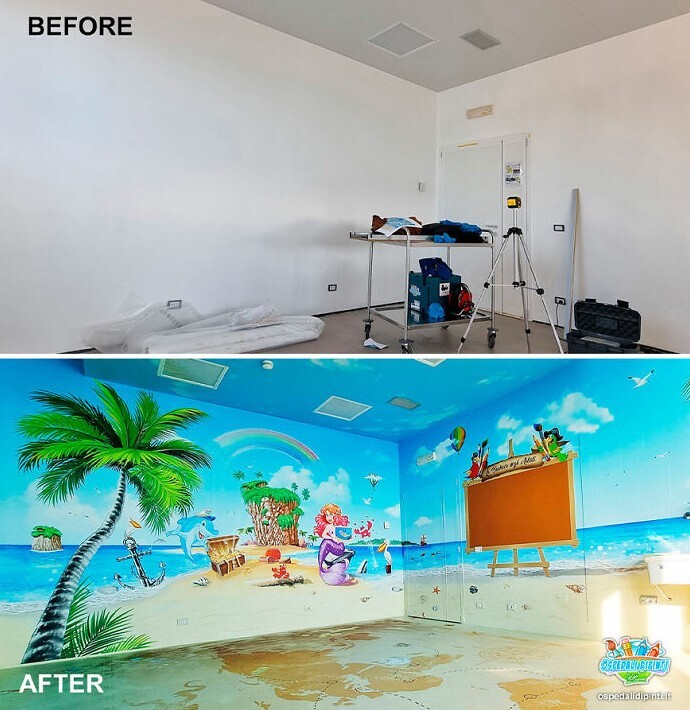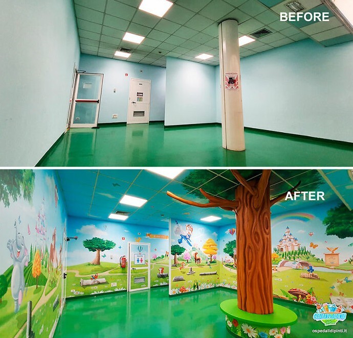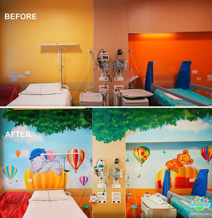 Silvio Irilli is the author of the Ospedali Dipinti project, in which he paints the boring walls of children's hospitals. The result is amazingly bright creations that distract little visitors at least a little.