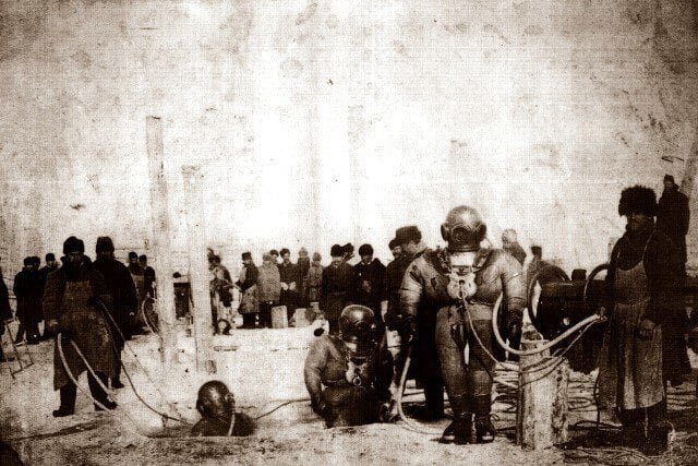 Divers are looking for treasure: 15 slightly frightening photos of divers of the past (16 photos)