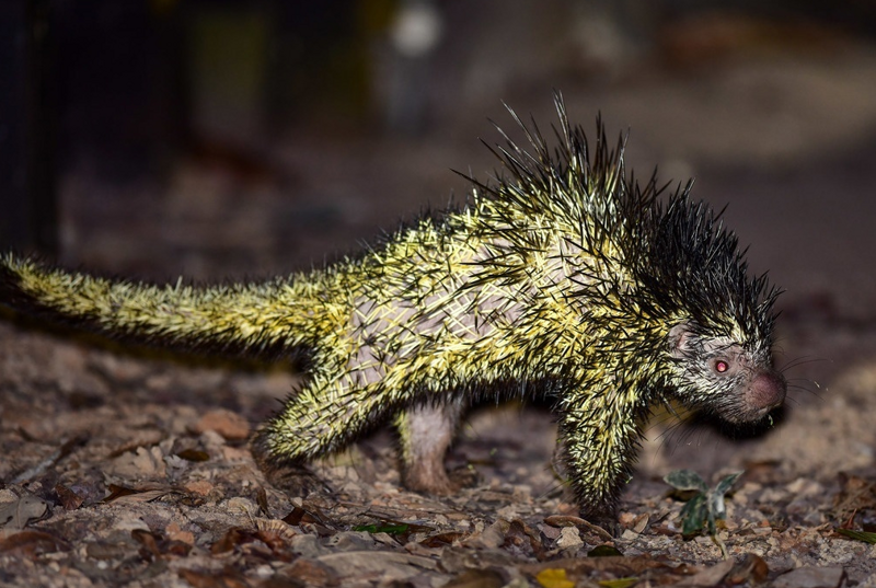 Even the gestation period for the two-colored porcupine was calculated only on the basis of general information about the family: pregnancy lasts up to 6-7 months, and during this time the porcupine mother gives birth to only one porcupine. Yes, it’s a long time, yes, it’s not long, but from the first minutes of life the baby is already sighted and walking. But despite all its capacity, the baby porcupine will stay in the nest for a couple of weeks, after which it will emerge with its parentsher to explore the big world.