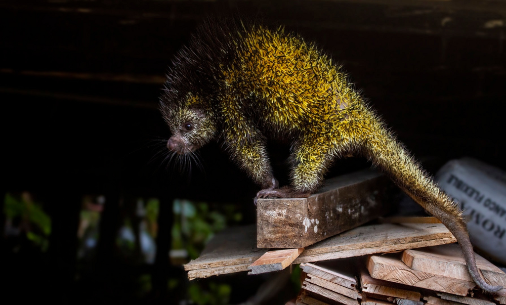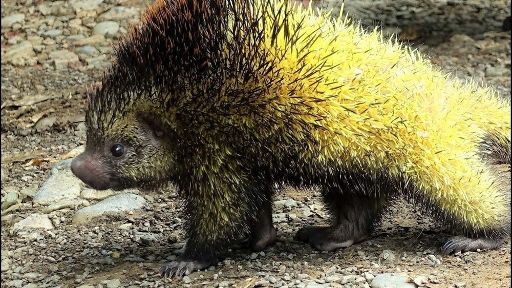 The entire half-meter body of the animals is covered with sharp needles, the longest of which grow on the withers and front of the back. This is another difference from Eurasian porcupines, in which the entire length falls on the back of the body. Well, the color combination of black and yellow could easily make the little animals the stars of an advertisement for a well-known cellular company. This contrast is achieved due to the fact that the porcupine’s sebaceous glands secrete a special wax-like substance that envelops and colors the quills.