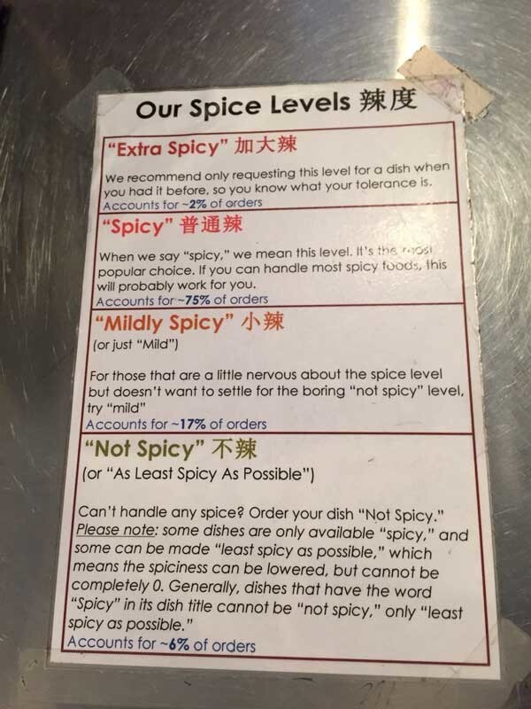 16. A Japanese restaurant tells its visitors about the level of spiciness of food.