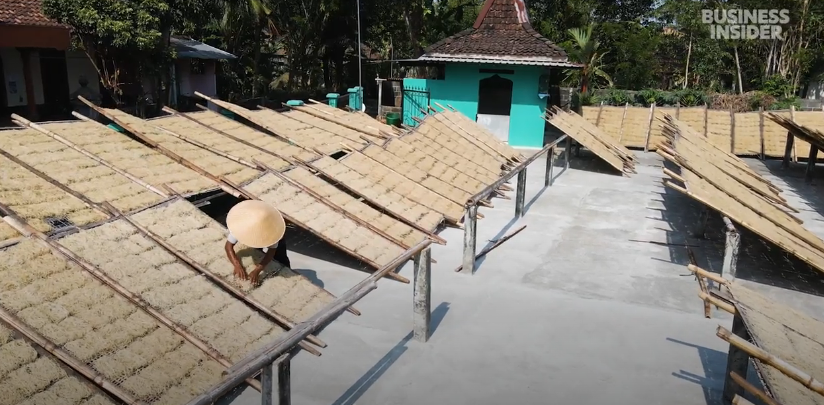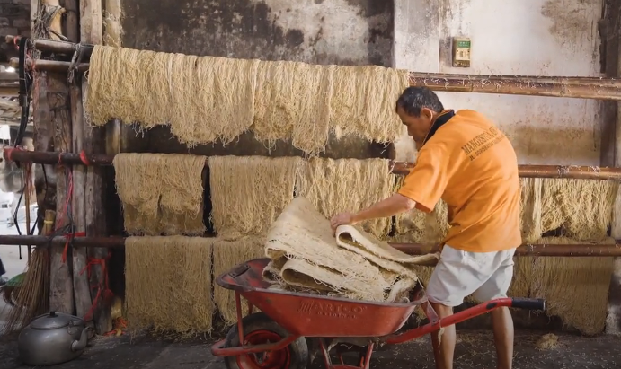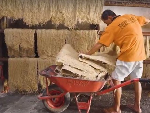In the Indonesian city of Bantul, traditional Mi Letek noodles are prepared exclusively in home factories and only by hand. The unique process of making Mi Letek noodles, which has been around for over 2,000 years, involves using buffalo strength and a method of flattening the noodles until they are firm and flat.