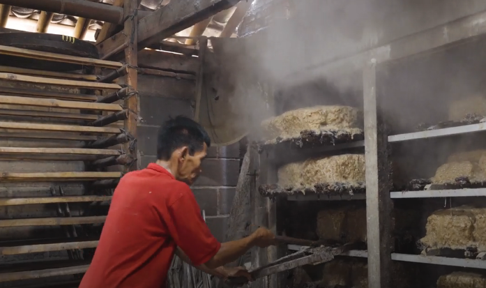 And here’s how they dry it on a bamboo stretcher under the sun for several days in a row