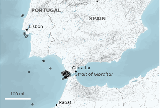 Map of killer whale attacks for the first half of 2023. Pay attention to the number of marks!