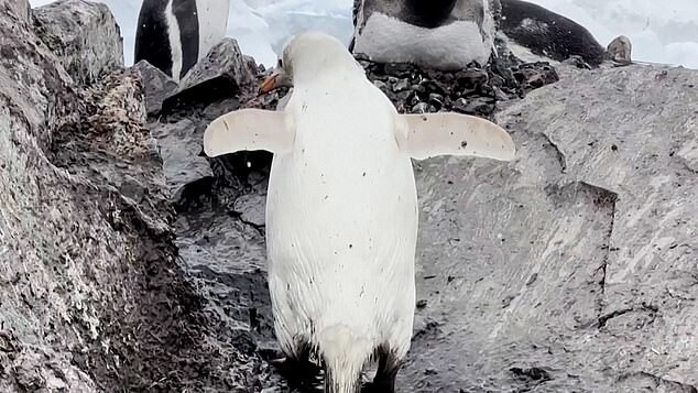 A rare penguin with all-white plumage has been spotted in Chile's Antarctic territory. It turned out that this cute creature has a unique feature.