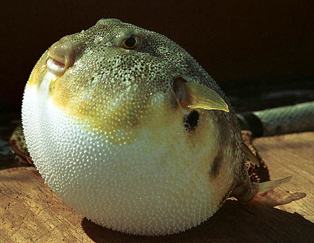 In the open ocean, the puffer fish somehow did not gain such popularity; other meat-eaters stop at trying to chew it. And all because the blowfish loves to sulk for any reason! As soon as a potential enemy appears, an offended, prickly and very spherical object resembling a fish appears in front of him. Not only does it not fit down the throat, it is also poisonous.