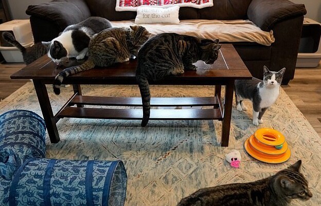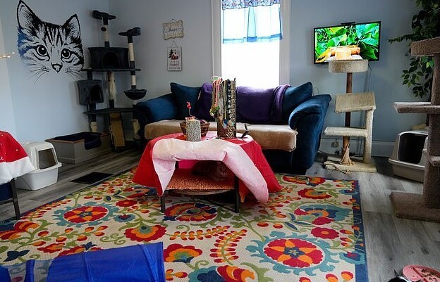 In the American state of Kentucky, an unusual shelter for cats, Shane's Sanctuary, was opened. It was opened by local resident Jen Malley and her husband Chip, and they take sensitive care of their furry charges. Now there are 45 cats living in the shelter - all of them were once rescued from the streets. The shelter has everything for a comfortable cat's life, and even more: cozy sofas, a large TV, many toys and scratching posts.