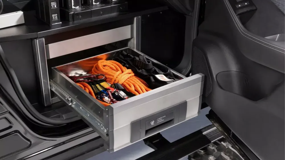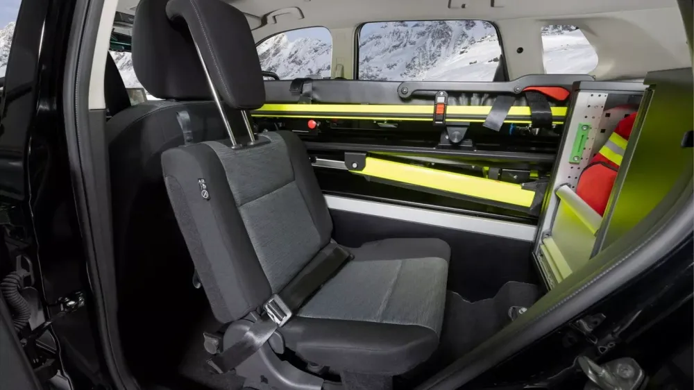 The interior of the crossover was transformed to search for and transport the wounded or injured. Instead of a rear sofa, there is a place for a recumbent person and a chair for a doctor, and a GPS navigator and a set of communication equipment are installed in the front part. In addition, the concept was equipped with a drone and a box for storing essentials.