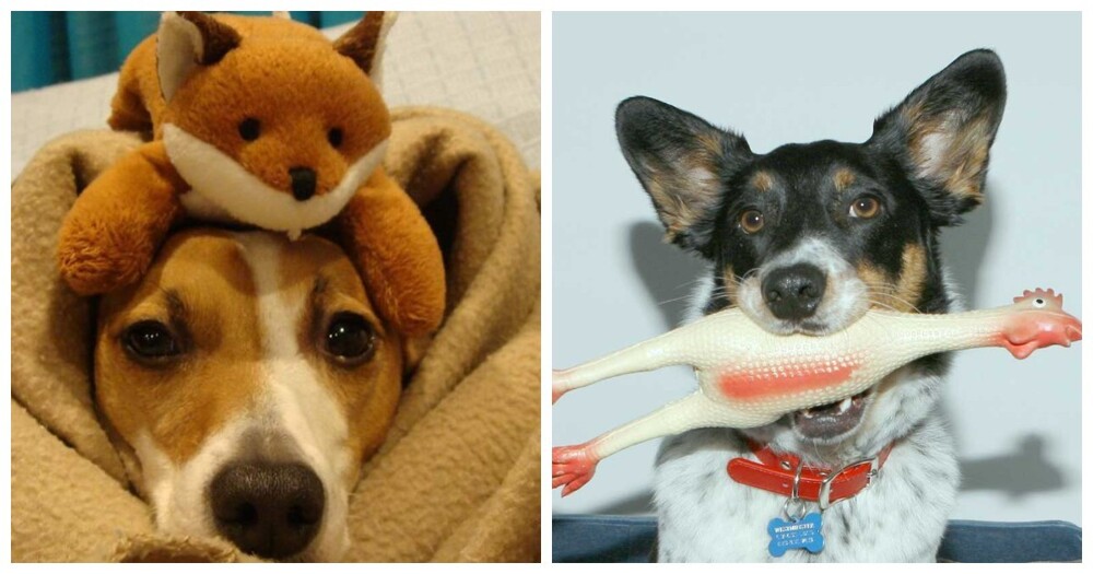 Or at least make you smile. Because dogs with their favorite toys look very touching and funny.
