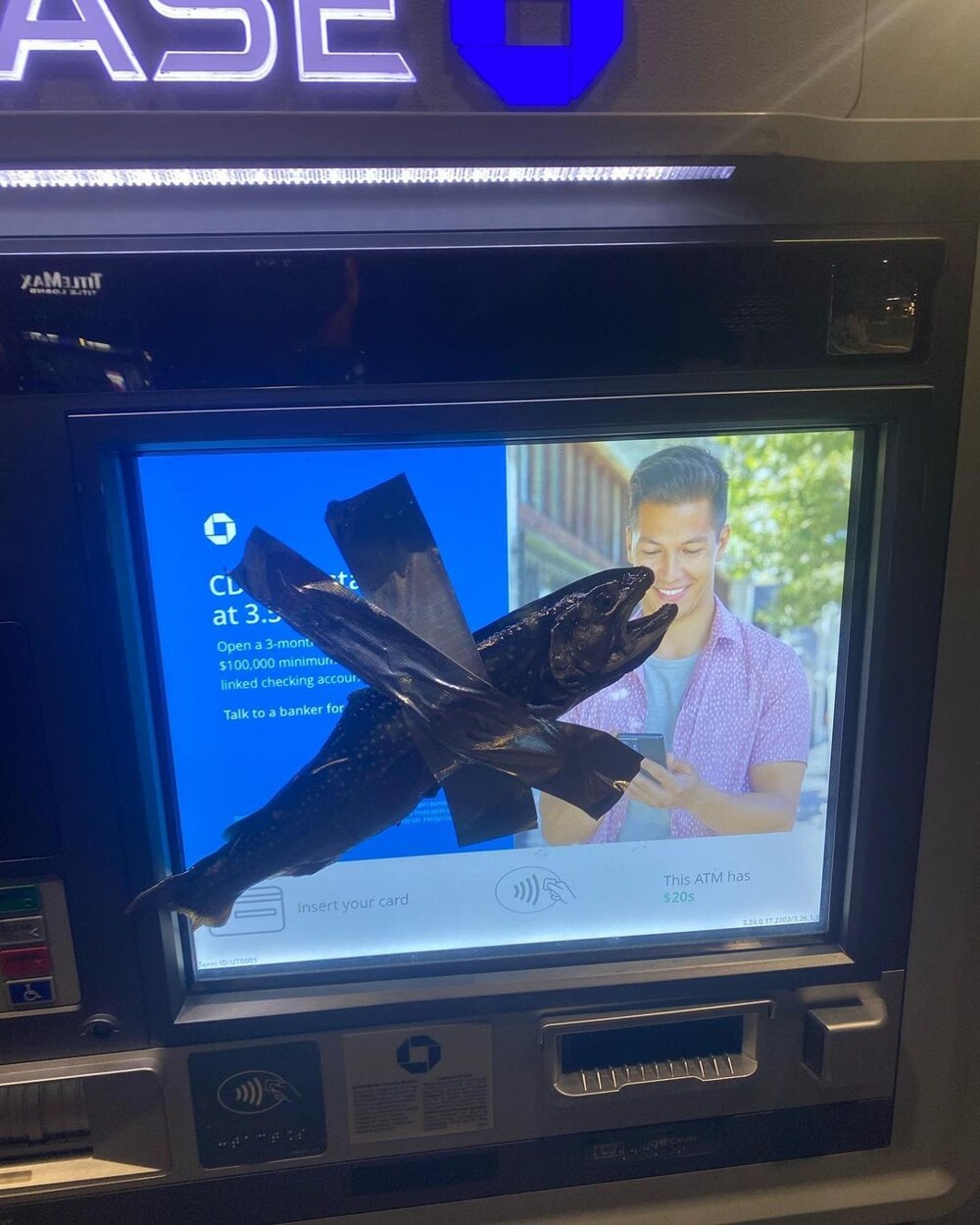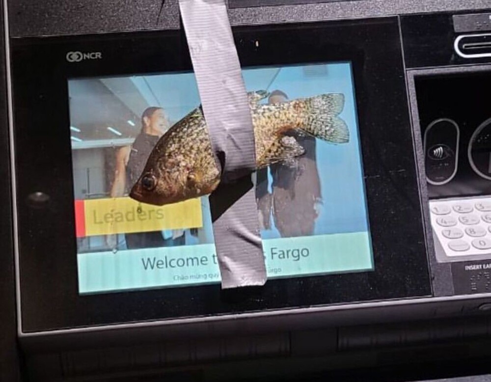 The teenager documented his antics using a social media account he called fish_bandit84. The description of the profile with photos of glued fish says: “Live, laugh, glue fish to ATMs. No fish were harmed in the process.”