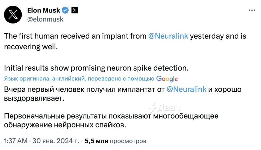 A message about the implantation appeared on the social network X (formerly Twitter)