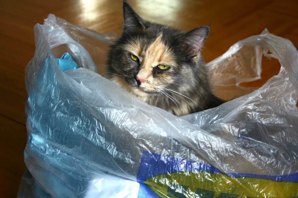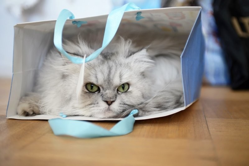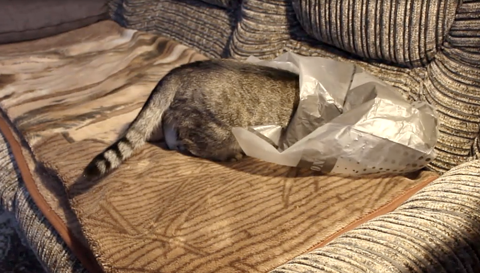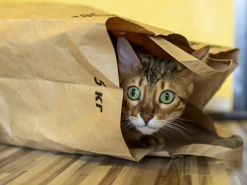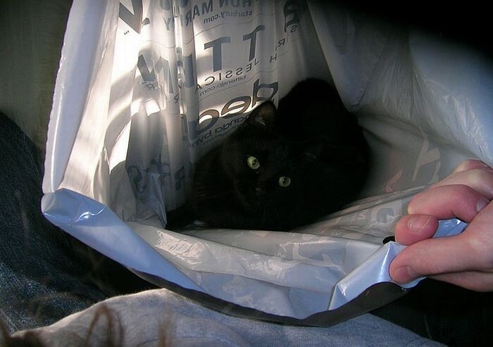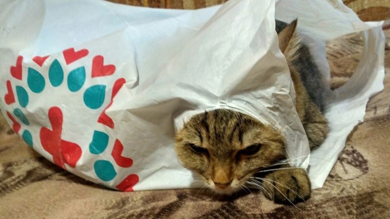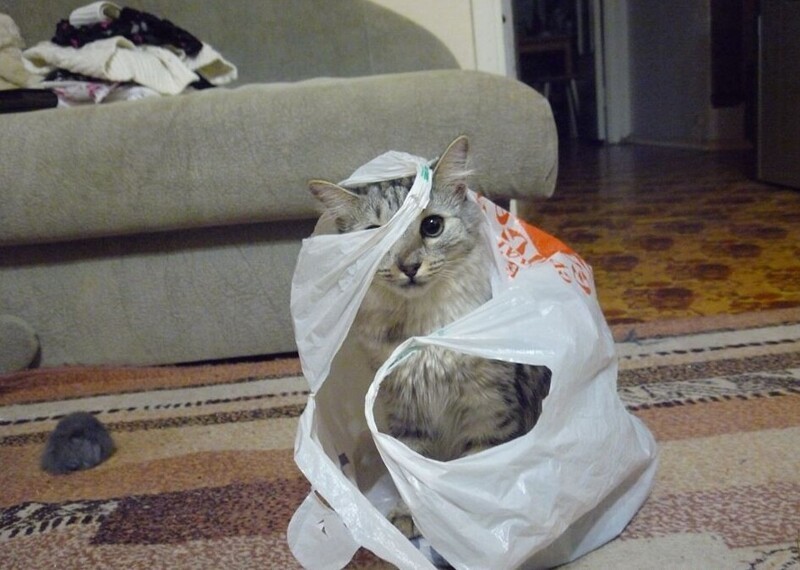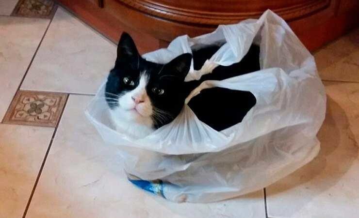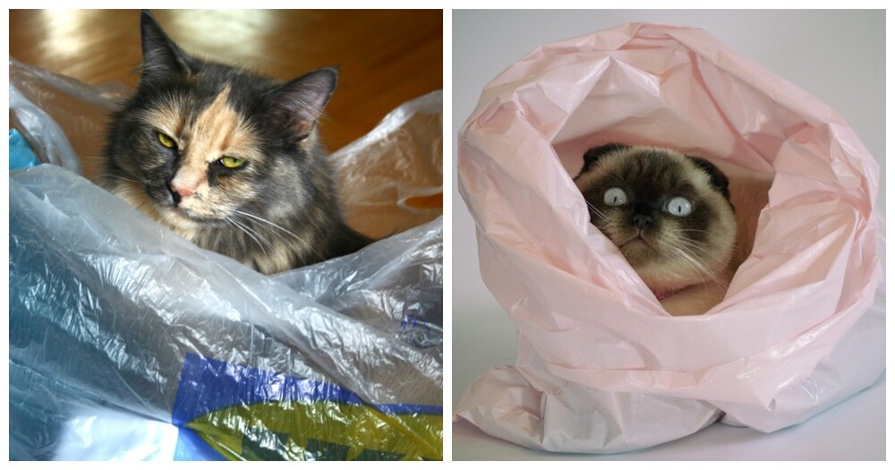 This is a banal smell from goodies that used to be in a bag, early separation of the baby from the mother, stress, unbalanced diet, pleasant texture, desire to play. Regardless, cats are really partial to plain packaging. And they turn it into a source of positivity, shelter, refuge and more. And in some cases, when the owners’ patience comes to an end, the package becomes a means of education and punishment.