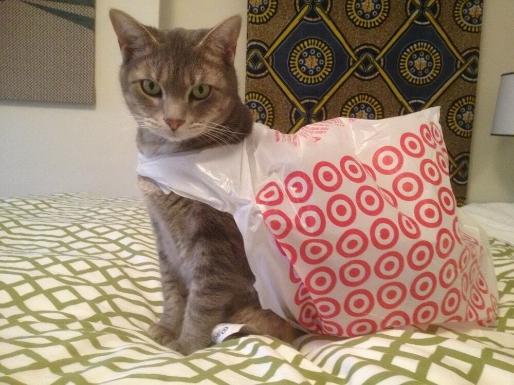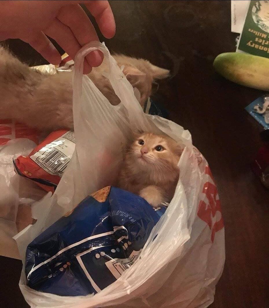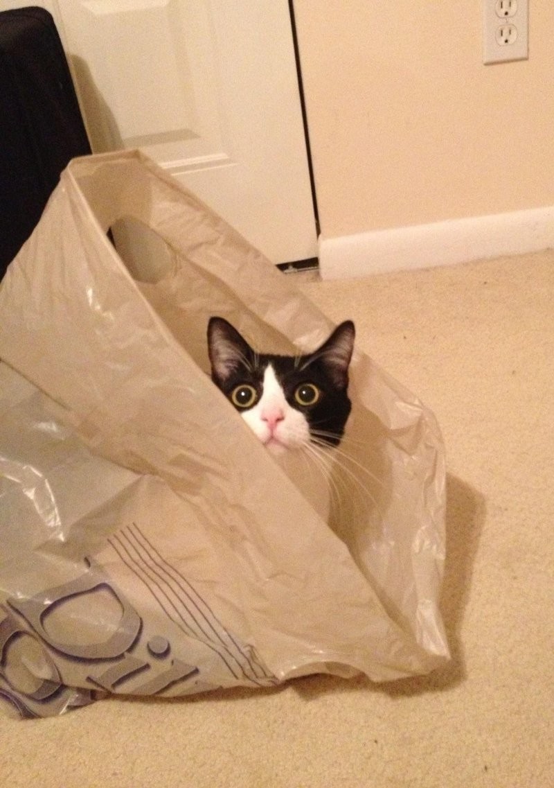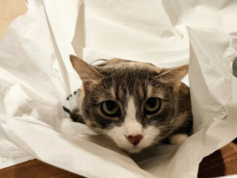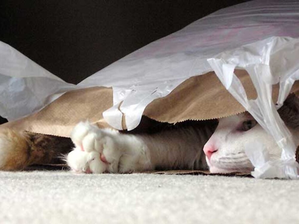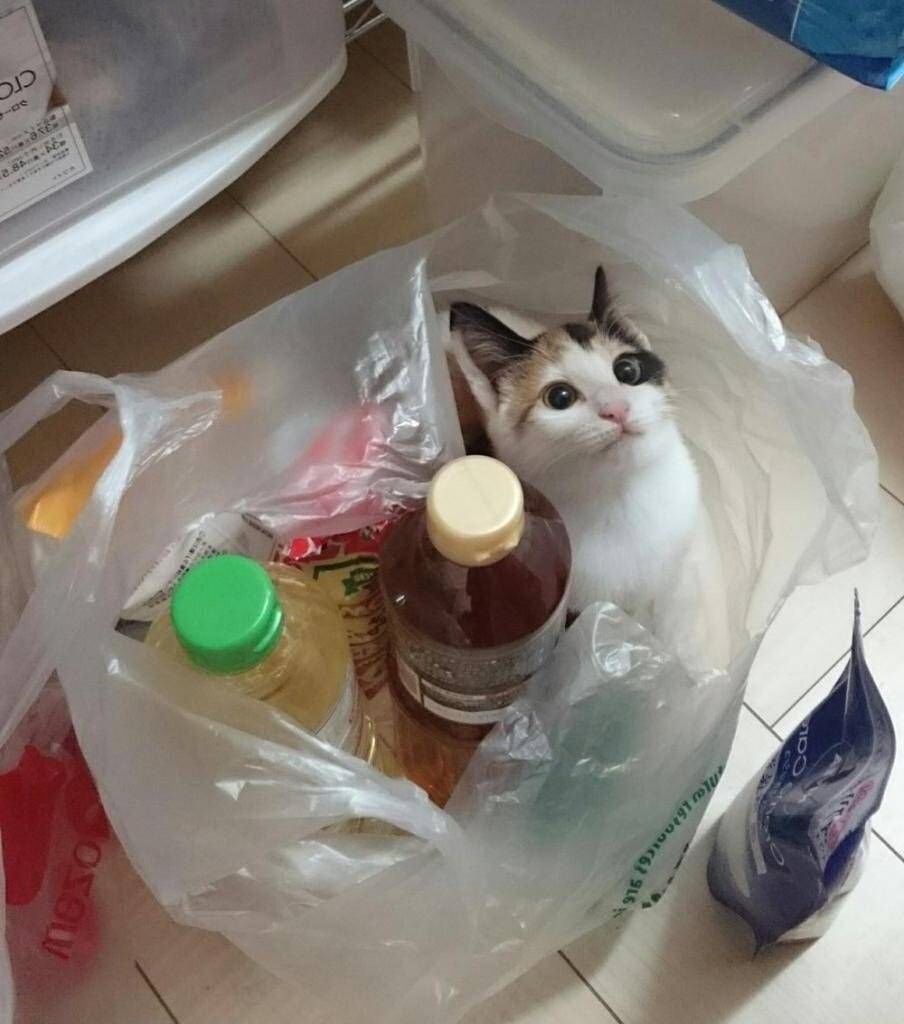 This is a banal smell from goodies that used to be in a bag, early separation of the baby from the mother, stress, unbalanced diet, pleasant texture, desire to play. Regardless, cats are really partial to plain packaging. And they turn it into a source of positivity, shelter, refuge and more. And in some cases, when the owners’ patience comes to an end, the package becomes a means of education and punishment.