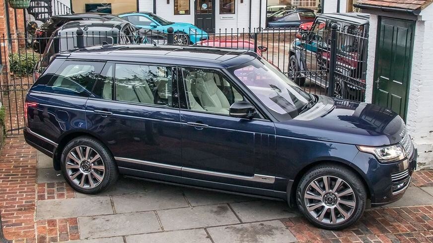 The long-wheelbase SUV with low mileage is priced at £225,000, which is approximately double the base price of a new Range Rover.