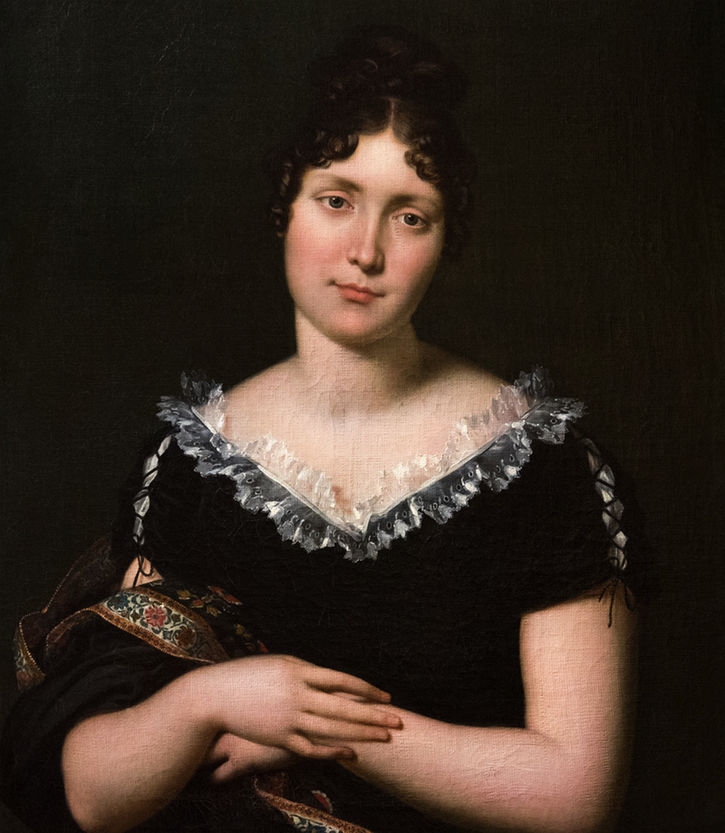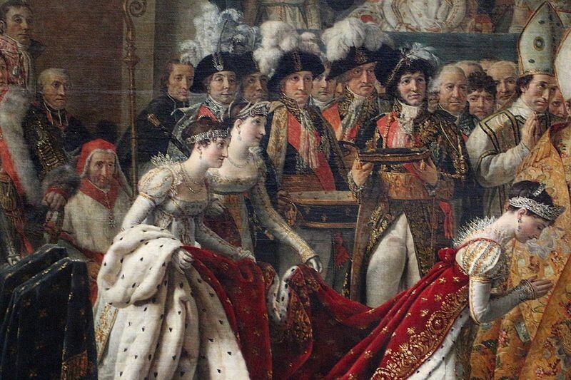 Madame Lavalette (second from left) holds the robe of Empress Josephine in the famous painting by Jacques Louis David