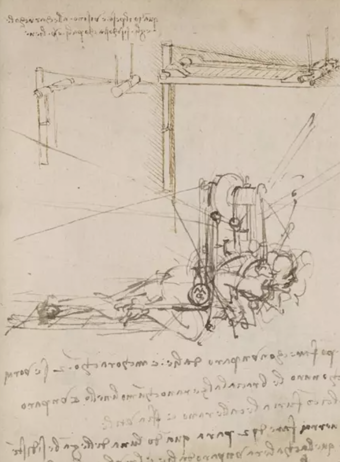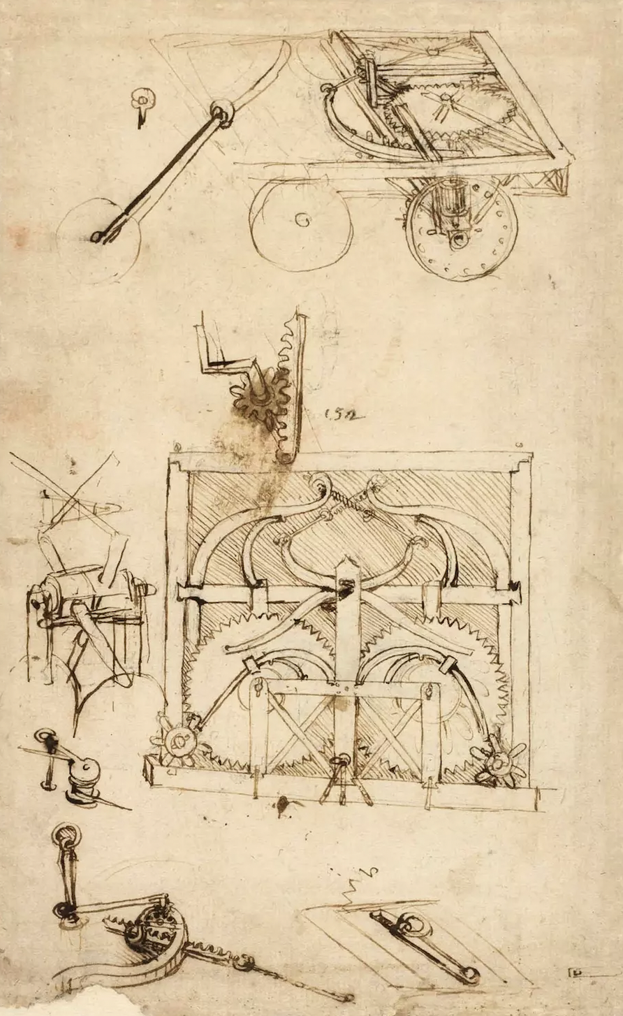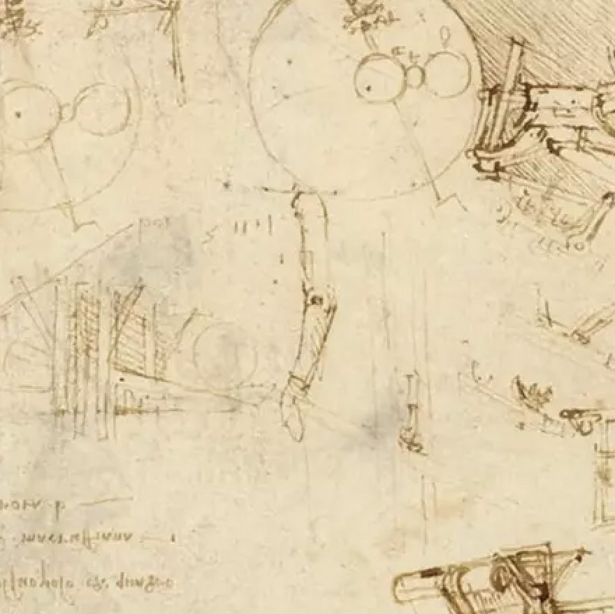 In the late 1400s, robotics was still a long way off, but da Vinci proved himself here too. He created several mechanical figures, including a drawing of a humanoid knight with a mechanism inside. With the help of this mechanism, the knight could move his limbs and head, sit down and walk.