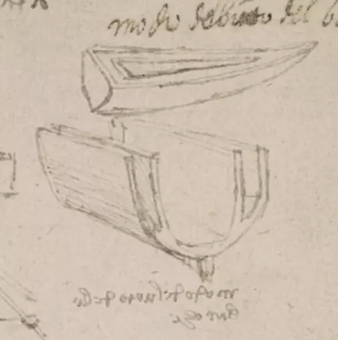 Another work of da Vinci is a submarine project. His boat did not submerge completely under water and was intended to sink enemy ships. However, the issues of movement and control of the boat remained unresolved.